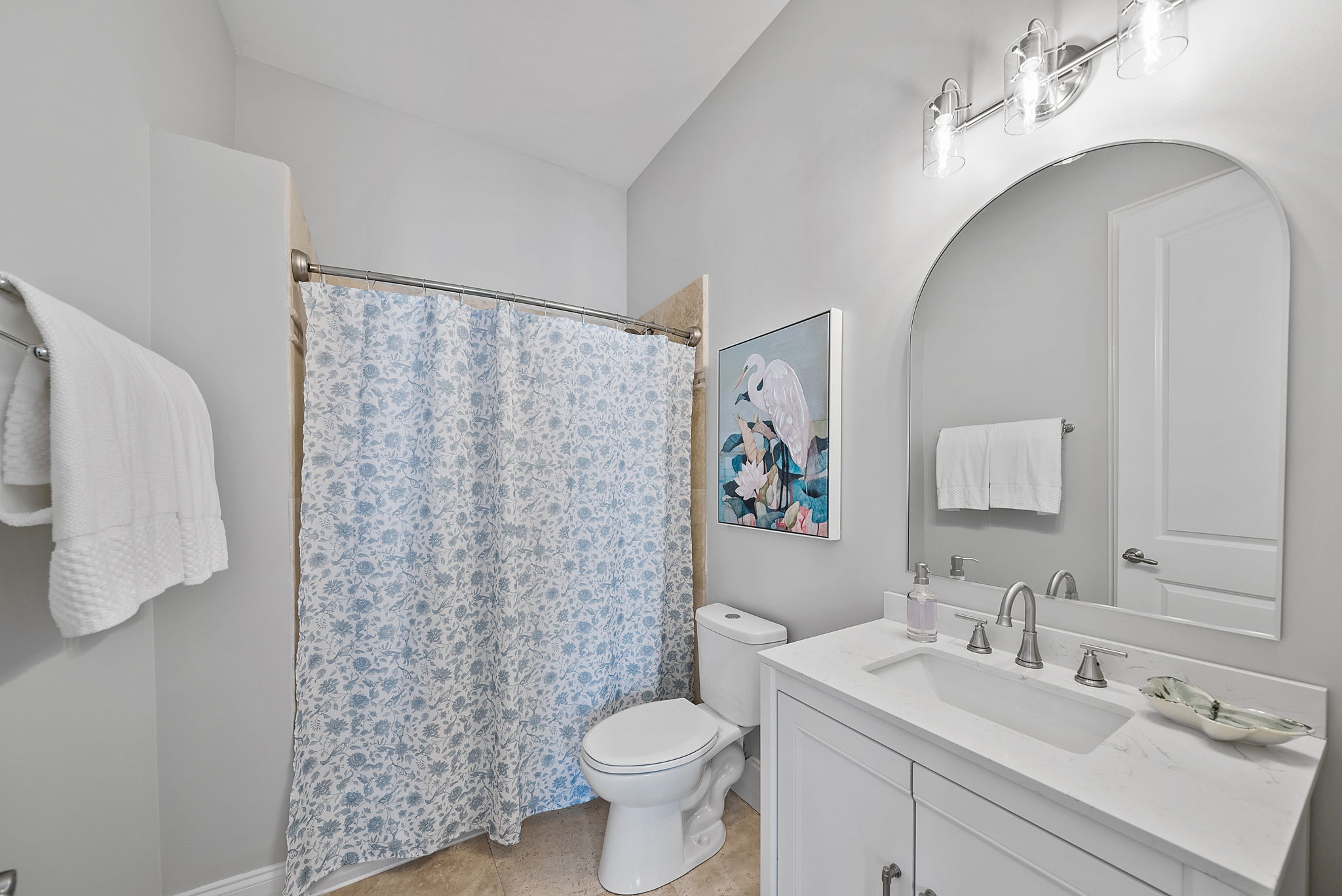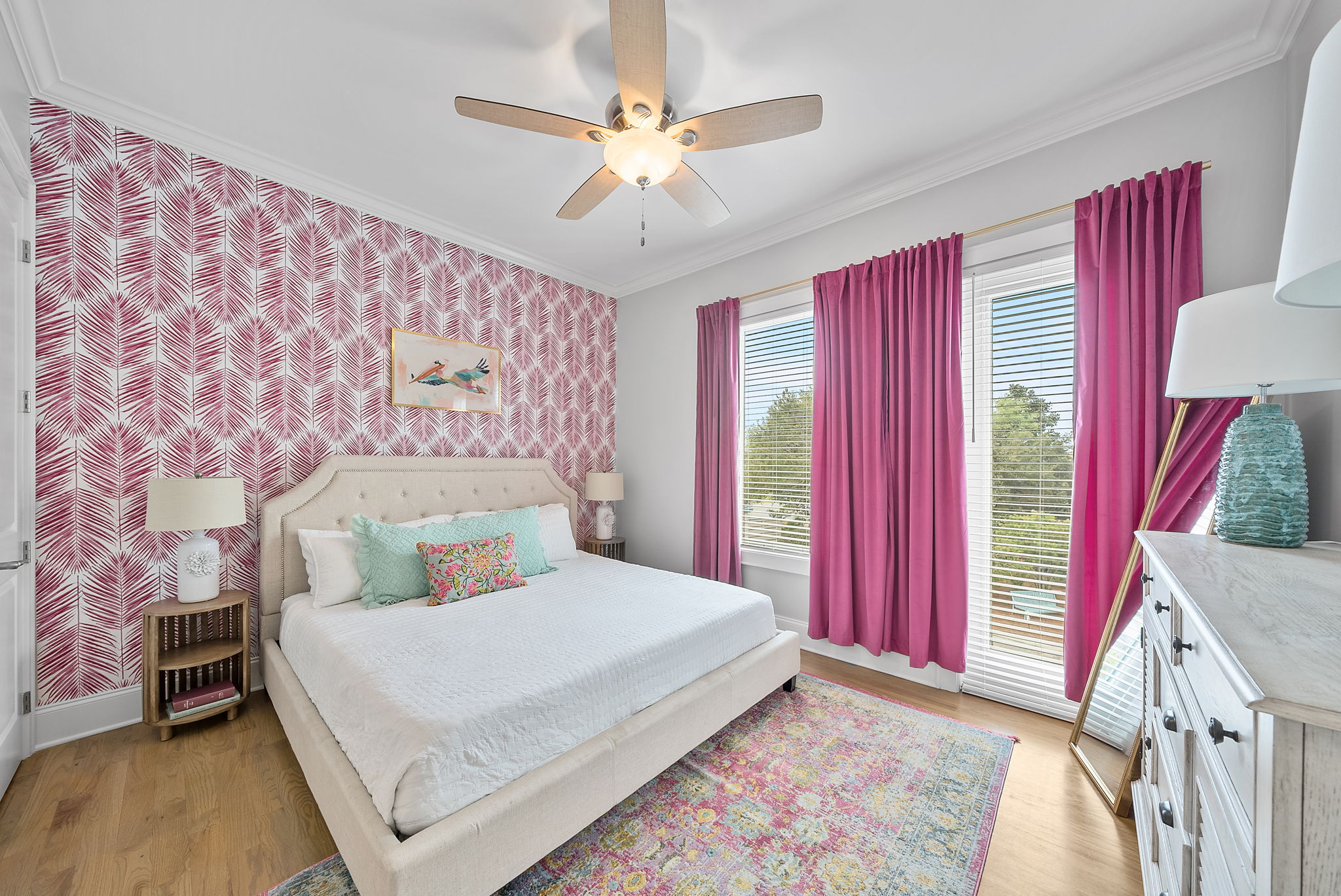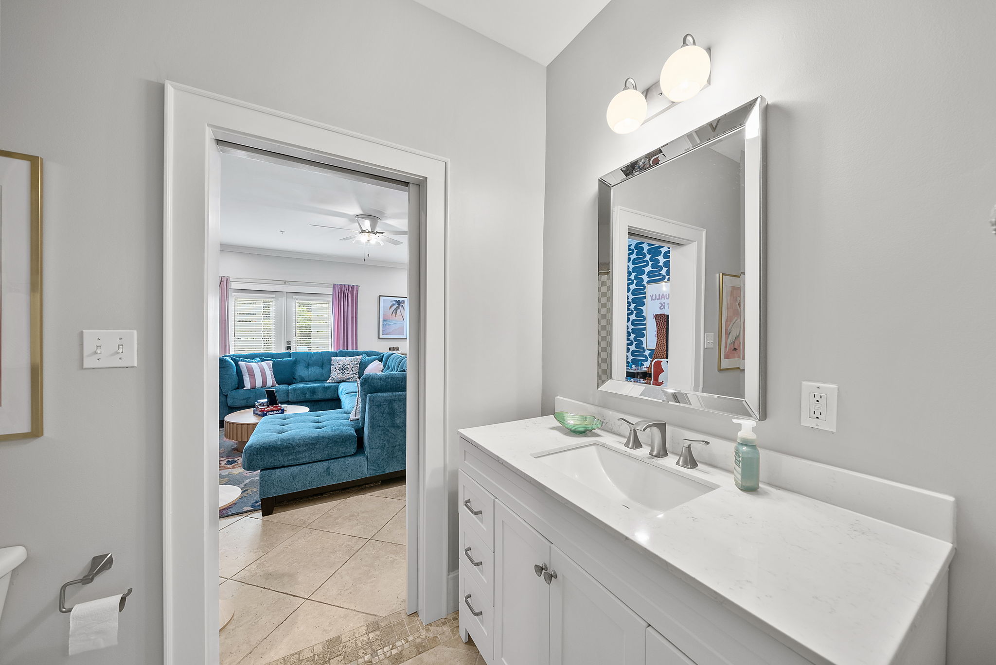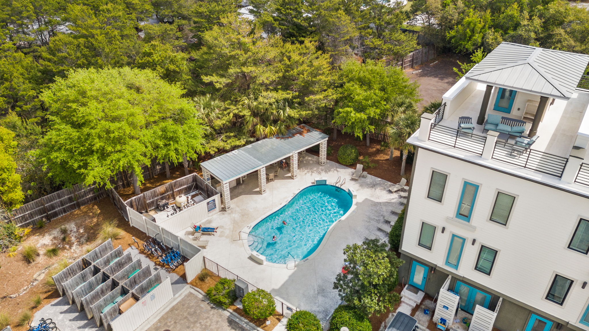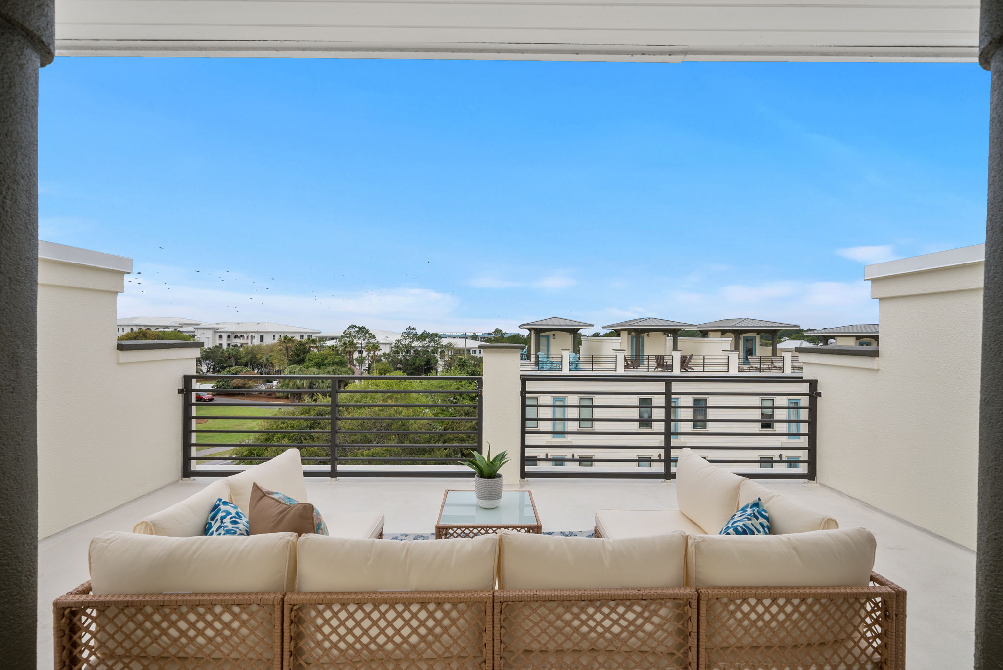 Our townhome has six queen beds and two king beds split between 4 bedrooms (all with attached bathrooms). There are two living areas, one of which is on the ground floor and home to the ULTIMATE game room. The game room has 3 arcade games, shuffleboard, and an 85-inch big screen with both NES Mini and Super NES Mini Nintendo consoles loaded with ALL the games you love. Whew! Want to get away from it all…head to the rooftop deck with peek-a-boo glimpses of the Gulf and views for miles…excellent for sunning or catching the beautiful Florida sunrises and sunsets. The rooftop has two seating areas and outdoor games, because…OF COURSE! We are a short 5-minute walk to Blue Mountain Beach and close to several 30A-famous spots and restaurants, including the 30A-renowned Blue Mountain Creamery, Blue Mountain Bakery and Cowgirl Kitchen (just to name a few)! The Posh Pelican is perfect for families or groups of all ages with plenty of space to spread out across three floors (plus the rooftop!). And, the townhome is fully stocked with many of the things you may need to make your stay perfect. Here are some of the things we have available: -A fully stocked kitchen with coffee makers, blender, crockpot, pots and pans, utensils, etc. -Smart-tvs in both living areas to allow for streaming of your favorite programming -2GB internet and 2 monitors available for use -Heated community pool (seasonally) -Community barbecue grill -Beach cart, chairs, coolers and towels at-the-ready for your beach adventures -Two pack 'n’ plays -Booster seat/high chair that attaches to a kitchen chair -Board games, books and toys And here are some more specific details of our townhome: There are 4 bedrooms + 4 bathrooms: -King Master bedroom with ensuite bath (tub/shower combo) -King Bedroom with shared bath (private entrance; shower) -2 Queen Bedroom with private bath (shower) -Quad Queen “Bunk” Room with two queen-over-queen, adult-weight rated bunk beds, shared bath (private entrance) -Open concept living room/kitchen area with island and ample seating and fully stocked kitchen. -Game Room with multiple arcades, shuffleboard, 85-inch screen and two Nintendo gaming systems, etc. -Rooftop terrace with two seating areas; one with a sectional seating area and one with two loungers and an Adirondack...perfect for morning coffee or after dinner drinks or just sitting back, soaking it all in.